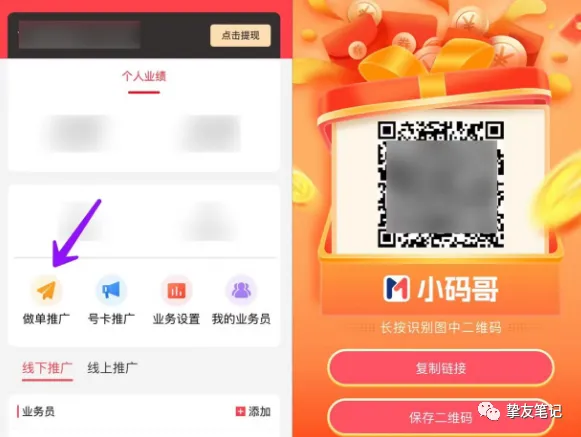 把你的推广二维码分享出去,别人成功兑换红包,你就可以赚钱。