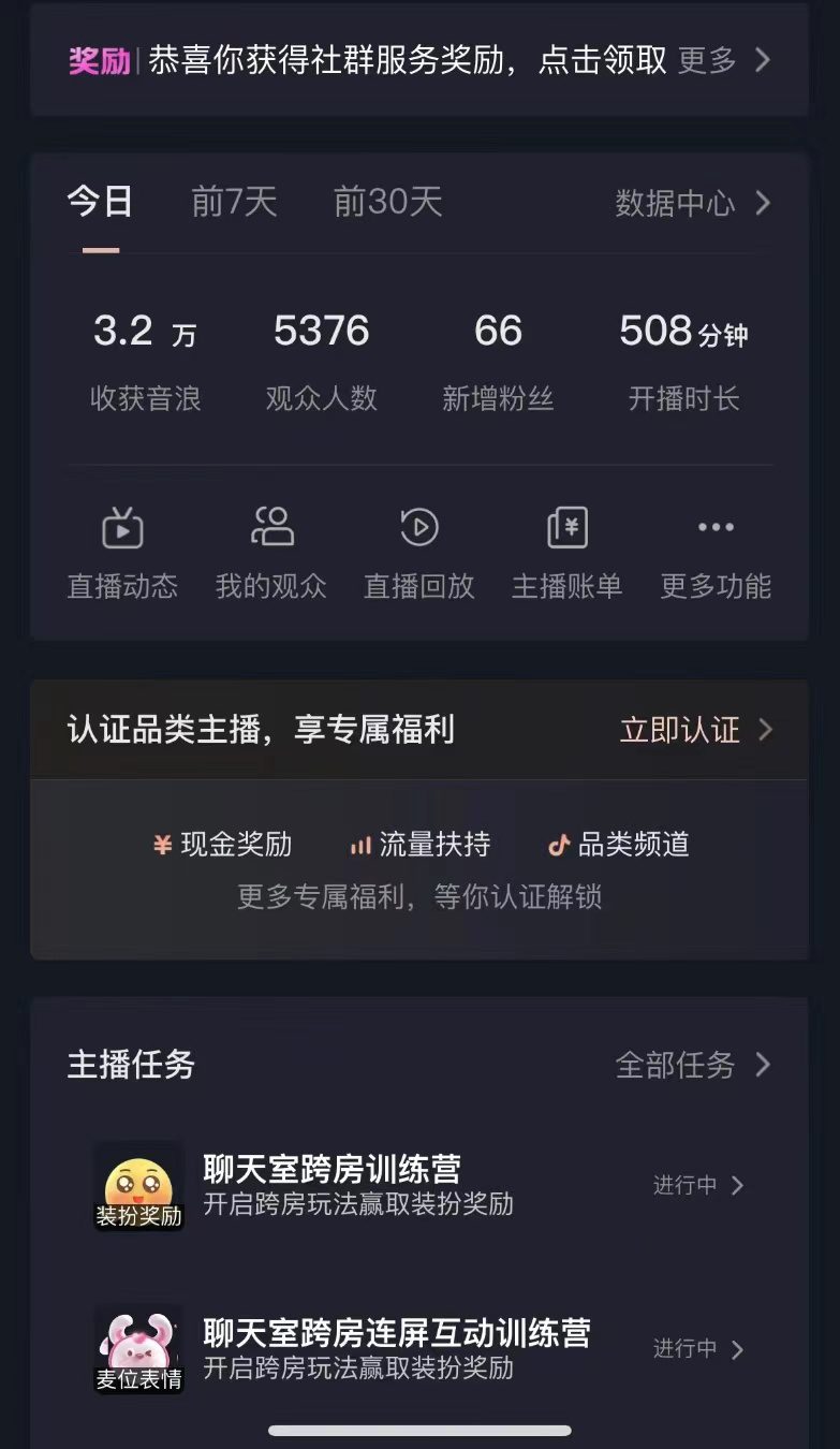 目前抖音最新推出VR直播玩法,现开播的人群还很少,是大家入手的好时机,观众进入直播间打开陀螺仪可360°旋转观看,