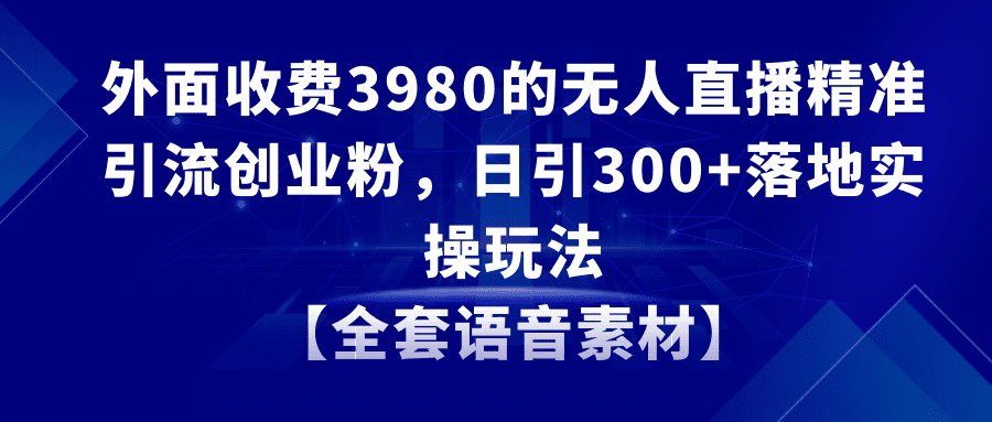 外面收费3980的无人直播精准引流创业粉,日引300+落地实操玩法【全套语音素材】