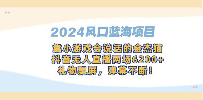 2024全网风口蓝海项目,靠小游戏,会说话的金杰猫,抖音无人直播两场6200+,礼物飘屏,弹幕不断!