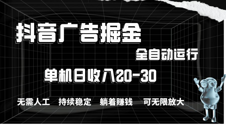 抖音广告掘金,单机产值20-30,全程自动化操作