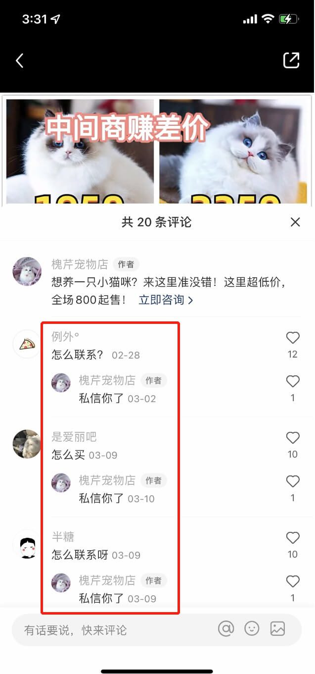 将对标账号记录下来之后,去进行一个筛选,发现那些点赞高,评论区互动高并且都是想要加微信买猫的账号筛选出来,这一点很重要,要的就是精准流量。