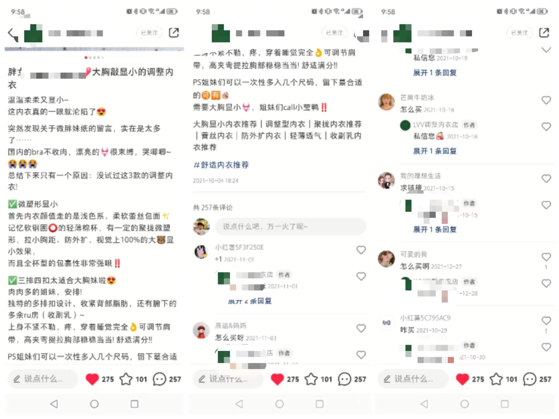 “调整内衣”是产品属性,也是核心关键词,通过这个词来定位笔记的标签,也有助于用户第一时间可以感知,这是一件大胸显小的调整型内衣。