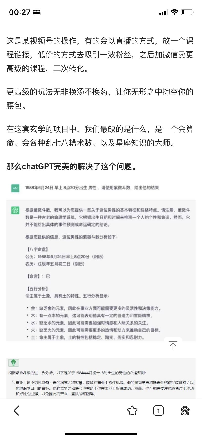 在这套玄学的项目中,我们最缺的是什么,是一个会算命、会各种乱七八糟术数、以及星座知识的大师。