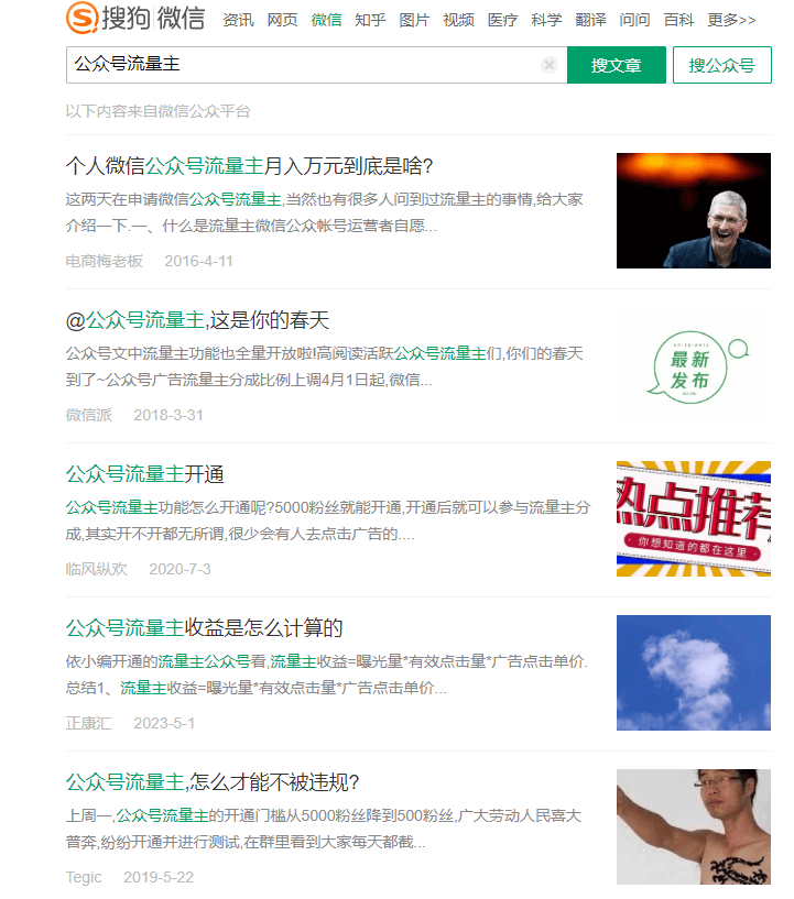 同时,如果还有精力的话,也可以通过公众号,百度等渠道,搜索公众号流量主这个项目,看看别人是怎么玩的。