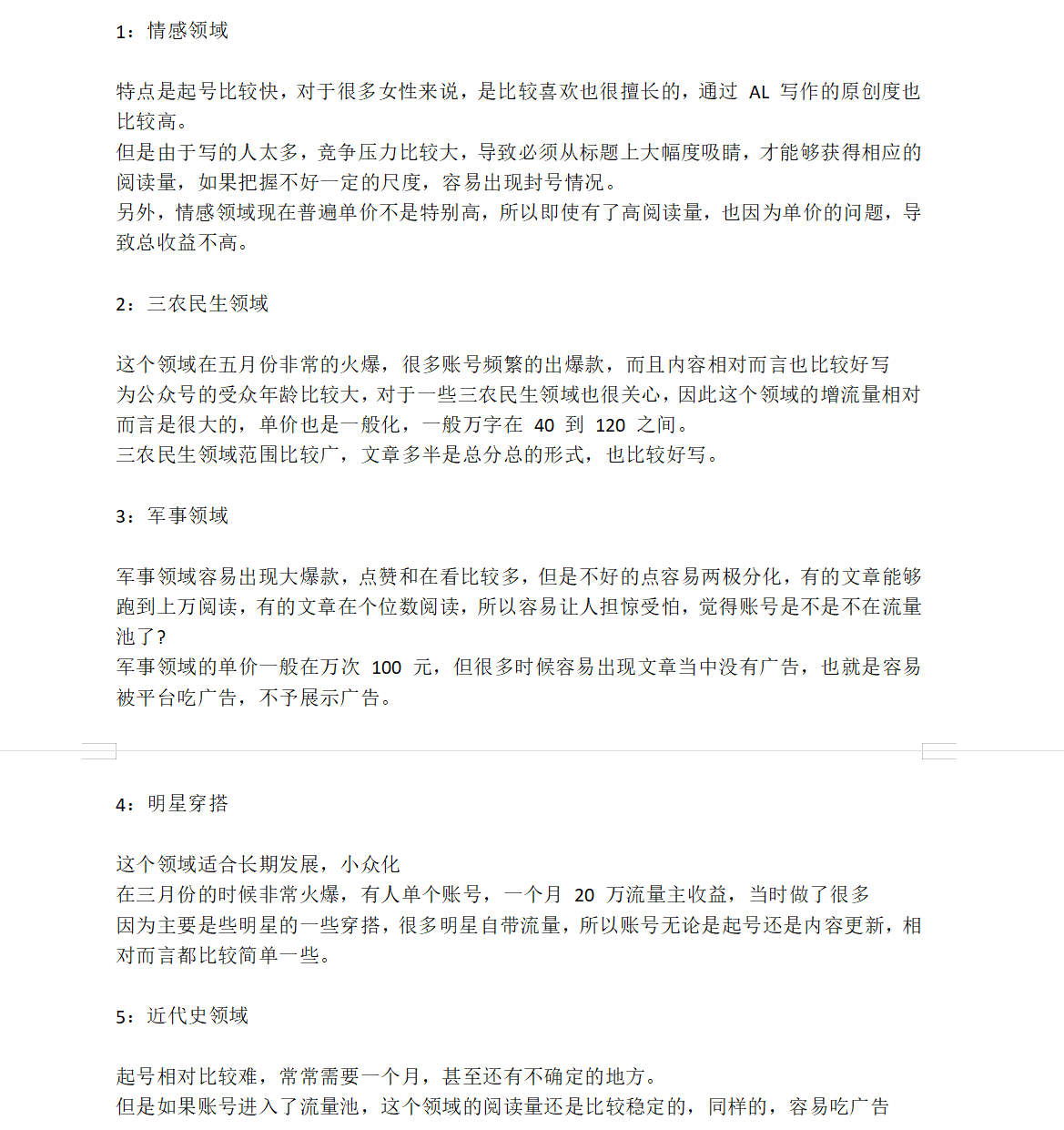 准备 2 个以上微信号,第一个不断的刷,看到什么领域都点开来,查看账号是什么领域的,最早更文时间,第一篇爆文时间,一个月有多少篇爆文。
