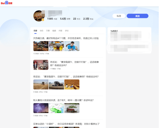 我们点开文章的作者,可以看到是百度百家号,1585 篇更新: