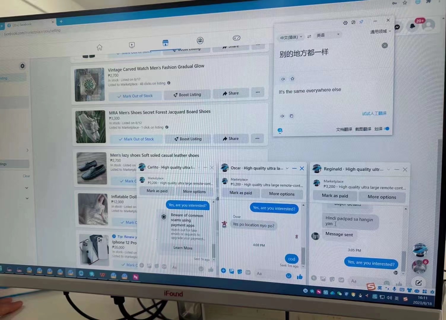 facebook是国外最大的社交平台,利用其巨大的自然流量卖货,交易类似国内微信咸鱼微博的结合体,操作简单而且平台没有任何规则和扣点,我们做的是无货源模式,无需囤货,直接从1688/拼多多上选品,把产品图片在FB商城发布交易贴,有意向的客户的会咨询,然后在对话框洽谈商品细节促成交易,每单的利润200-2000+